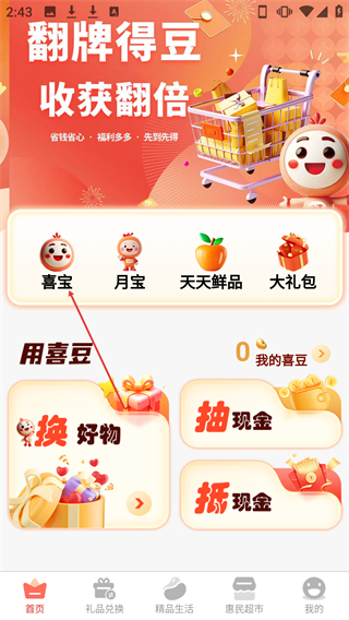 1、支持通过签到分享购物及拼团等多元方式赚取喜豆,积累的喜豆可兑换涵盖数码家居美妆等多品类实用礼品,实现额外回馈。