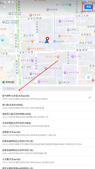2、在地图页面,选择出发地与目的地位置,点击右上角【完成】按钮,进入对接信息填写界面。