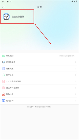 1、在设置页面,点击【点击头像登录】区域,进入登录界面。