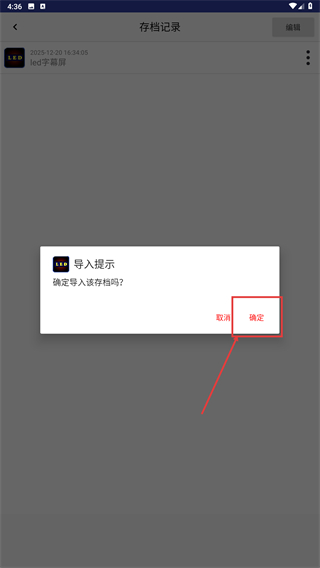 2、在存档记录页,点击目标存档条目右侧的【编辑】按钮,弹出“导入提示”弹窗。