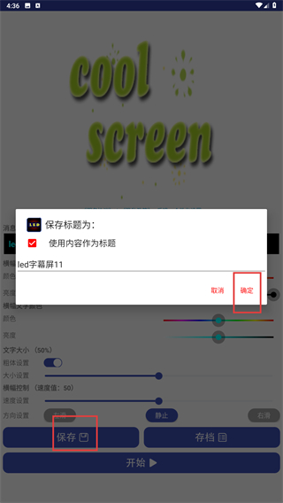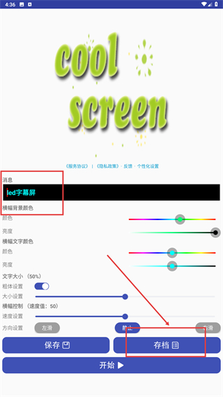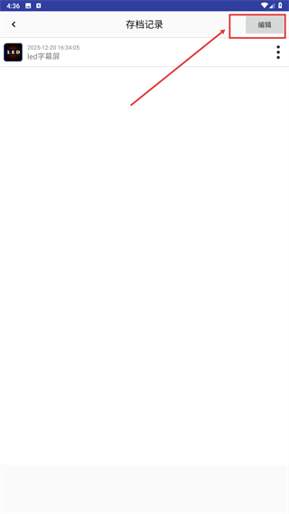 1、在led字幕屏的设置界面,完成字幕样式(如颜色、大小)的配置后,点击【存档】按钮,进入存档记录页面。