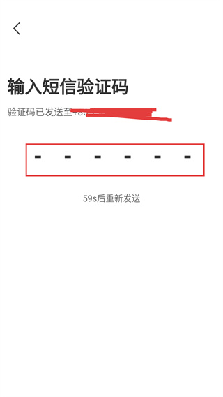 3、获取验证码后进入该页面,在6位输入框填收到的验证码,完成验证码填写即可继续。