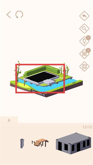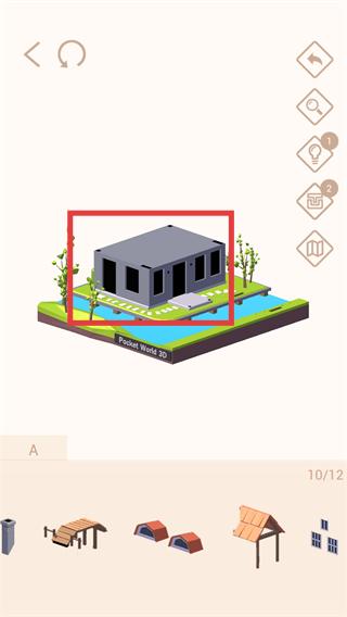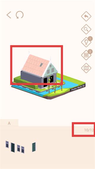 4、添加【屋顶-门窗】等细节部件,完成模型的完整拼接,界面显示【10/12】进度时,继续补充剩余部件。