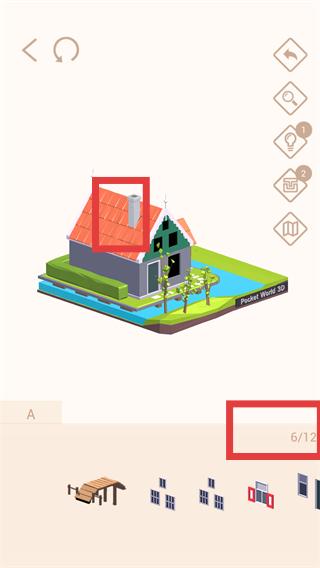 2、在屋顶区域拼接【烟囱部件】,完善建筑顶部细节,进度更新为【5/12】后,处理剩余部件的匹配。