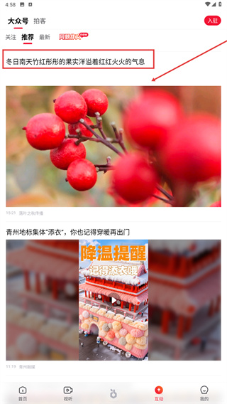 2、在【大众号】页面浏览推荐资讯,如冬日红浆果这类生活图文,轻松获取实用有趣的信息。