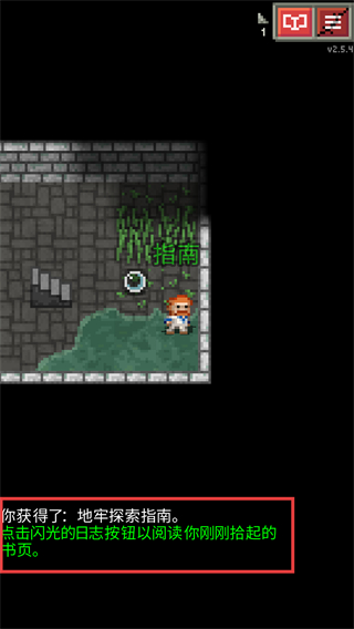 4、获得【地牢探索指南】后,点击【日志】按钮阅读书页,了解地牢探索的关键技巧与提示。