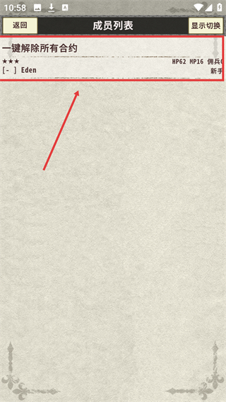 1、查看【成员列表】中【Eden】的【HP62】【MP16】状态,确认合约情况,管理佣兵以优化队伍配置,提升战斗能力。
