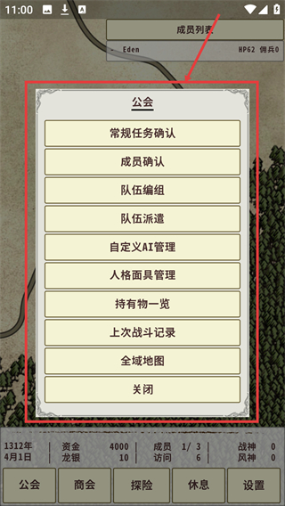 2、根据提示进入【公会菜单】,选择队伍编组选项,招募或添加成员,组建属于自己的战斗队伍,为后续任务做准备。