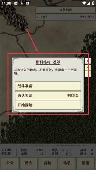 4、在【斯科格村近郊】界面选择【战斗准备】,检查装备与队伍状态,确认奖励后开始探险,体验中世纪战斗的乐趣。