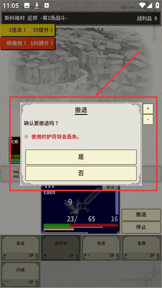 3、战斗中撤退会丢失使用的护符,弹出确认框时需根据战局谨慎选择是否撤退。