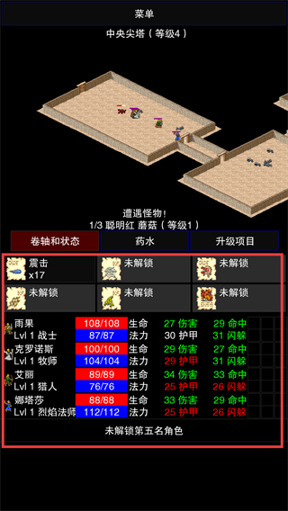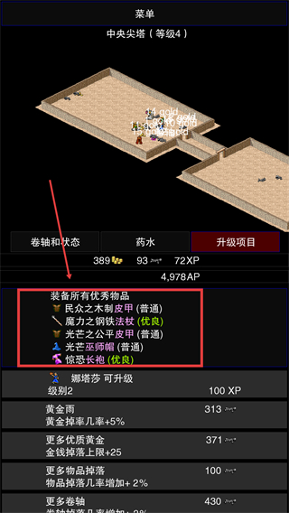 4、战斗胜利后收集【金币】和物品,装备【优良】品质物品,提升队伍属性为后续冒险做准备。