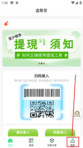 1、打开【盒聚变】首页,点击底部【我的】进入个人中心。