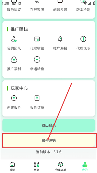 3、找到【账号注销】按钮,点击可触发注销流程。