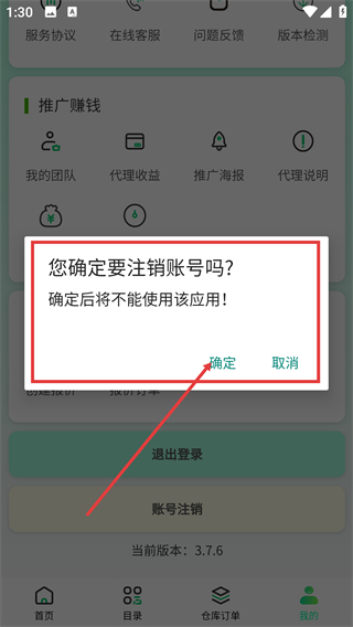4、点击【账号注销】后弹出确认弹窗,点击【确定】即可完成账号注销操作。