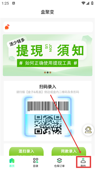 1、进入盒聚变首页,点击底部【我的】进入我的界面。