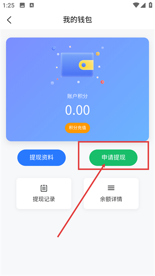 3、在盒聚变我的钱包页面,可查看账户积分,进行积分充值操作,还能提交提现资料或申请提现。