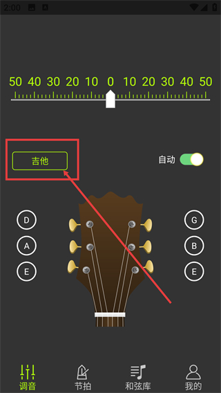 1、打开应用后,先选择【吉他】乐器类型,即可进入调音界面。