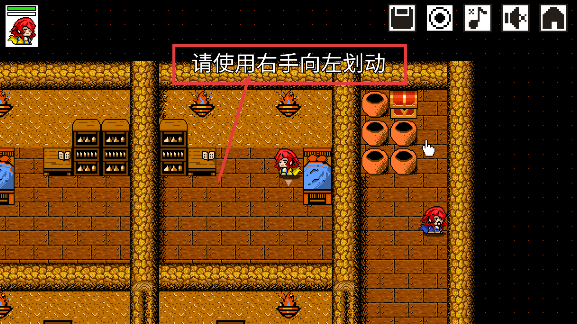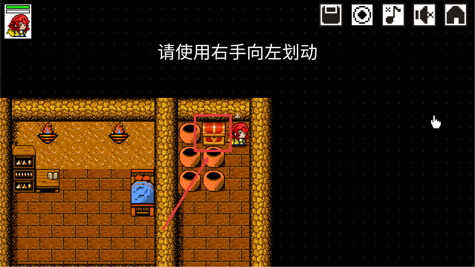 3、在房间内按提示用右手向左划动屏幕,可探索更多区域,找到【宝箱-陶罐】等道具助力冒险。