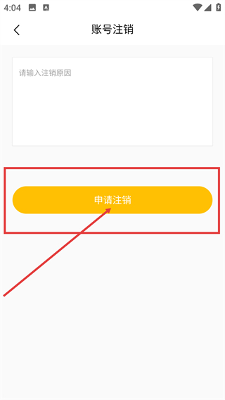 4、在账号注销页面,输入注销原因后,点击黄色的【申请注销】按钮即可提交注销申请。
