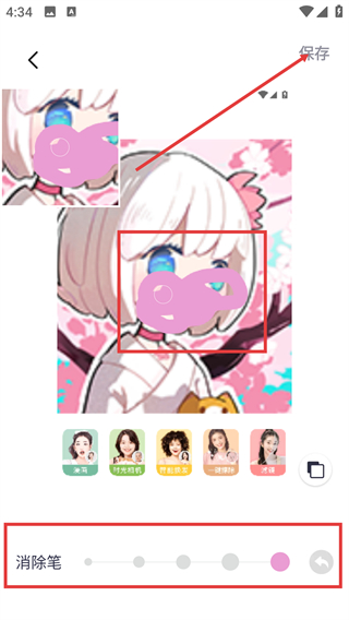 3、使用消除笔工具调整图片细节,完成后点击右上角【保存】按钮,即可保存当前编辑的内容,方便后续查看。