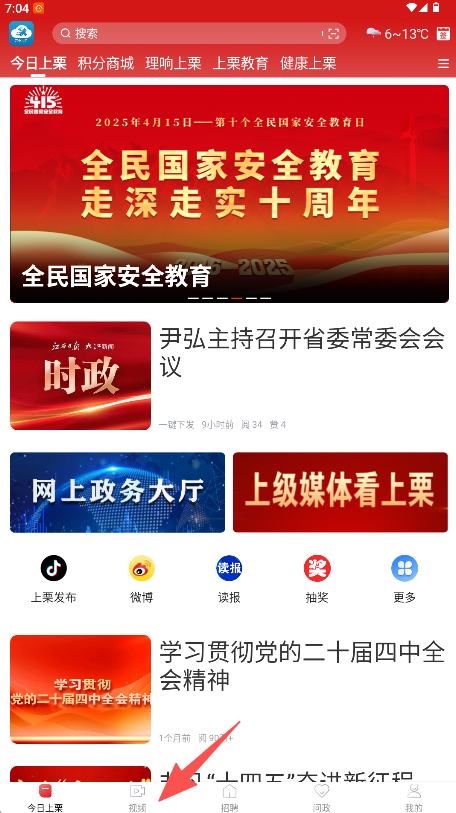 1、在底部导航栏点击“视频”按钮。
