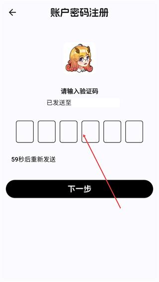 4、在【账户密码注册】页,填入已发送至对应手机号的验证码,点击【下一步】完成注册。
