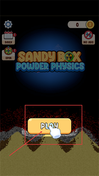 1、进入【SANDY-BOX-POWDER-PHYSICS】界面后,点击被标注的【PLAY】按钮启动游戏。