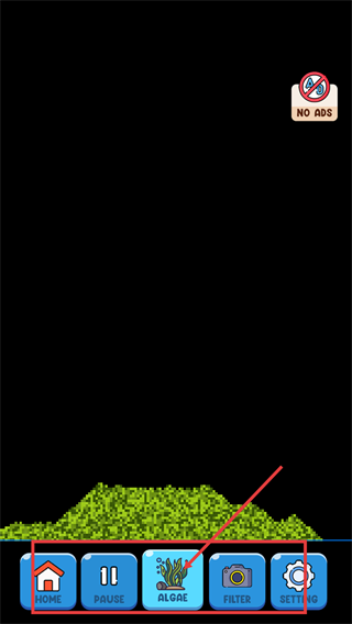 2、游戏场景界面底部设有【HOME】【PAUSE】【ALGAE】等按钮,通过这些按钮可执行暂停、切换元素等操作。
