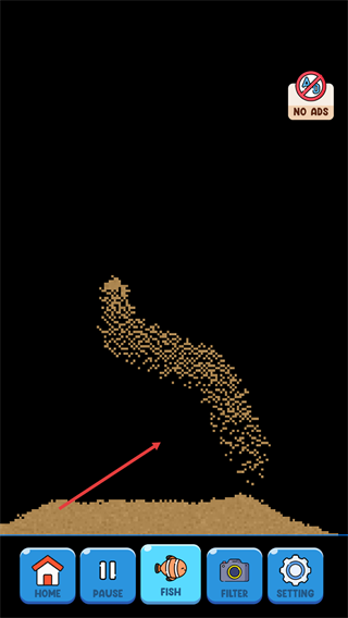 4、选中【LIBRARY】里的【FISH】元素后,在游戏场景操作会生成对应粉末效果,可借助底部按钮调整游戏状态。