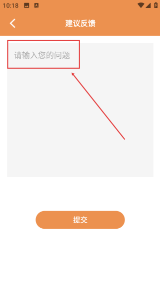 3、在反馈页,点击【输入框并填写内容】,完成建议反馈的信息编辑。