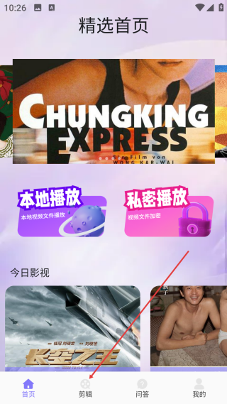 1、进入首页后,点击底部【剪辑】选项,进入视频剪辑工具的功能界面。