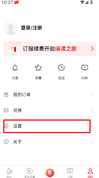 2、在“我的”页面中找到并点击“设置”选项,进入应用的基础与显示相关设置界面。