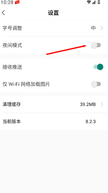 3、在设置页面中找到夜间模式开关,将其开启后即可切换为夜间显示效果,提升夜间阅读时的舒适度。