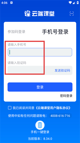 2、在登录界面选择手机号登录,填写手机号并获取验证码后,勾选协议即可登录。