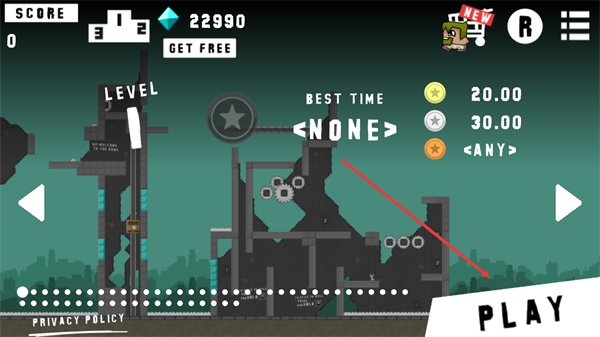 1、看到界面中的【PLAY】按钮,点击它可进入关卡,同时留意【SCORE】和【LEVEL】等信息,了解当前进度。