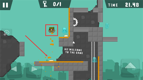 3、利用弹跳机关来推进关卡,同时注意界面中的【HI!WELCOME-TO-THE-GAME】提示。
