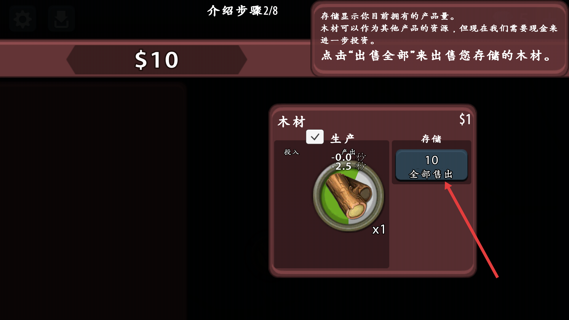 2、当木材存储有存量时,点击【全部售出】按钮,可将存储的木材兑换为现金,用于后续投资。