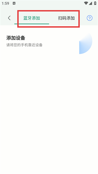 2、在添加设备界面,可选择“蓝牙添加”或“扫码添加”两种方式,这里选择【扫码添加】切换到对应功能页。