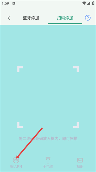 3、在扫码添加页面,点击底部【输入PN】选项,进入PN码绑定界面。