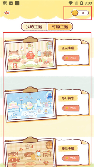 2、在主题类别界面,可以切换【我的主题】、【可购主题】标签,消耗对应货币兑换不同风格的家园主题。