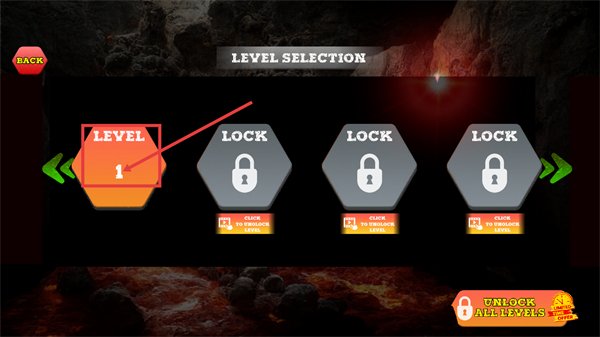 1、进入【LEVEL-SELECTION】界面后,优先选择已解锁的【LEVEL-1】开启游玩,其余关卡需通过【CLICK-TO-UNLOCK-LEVEL】的提示解锁。