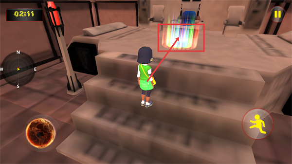 4、留意左上角的【02:11】倒计时,找到场景中的彩色光柱区域,前往该区域来完成当前关卡的对应目标。