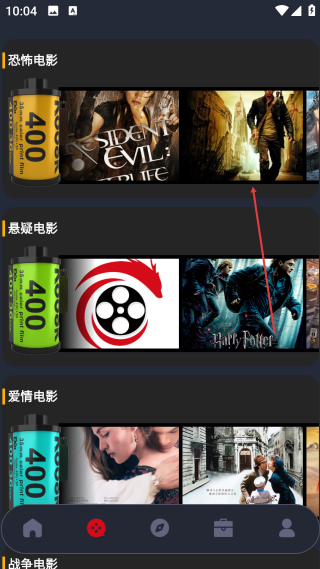 1、进入首页后,点击【底部对应分类选项】,进入影视分类的展示界面。