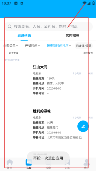 3、进入选角页面,查看【组讯列表】,了解【剧集的拍摄周期、地点等信息】。
