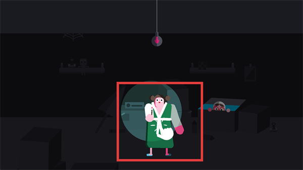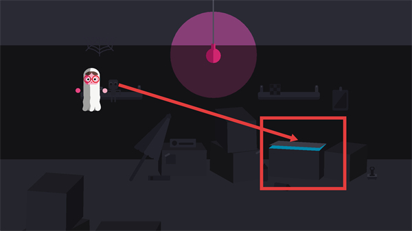 2、点亮后发现藏身处,快操控小幽灵躲进带蓝边的箱子里,这样能避开危险,悄悄推进剧情超刺激。