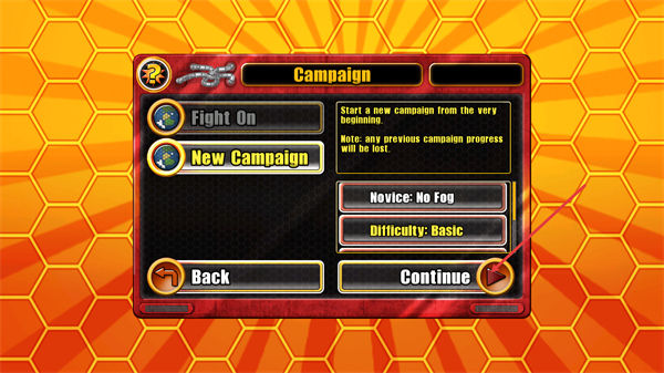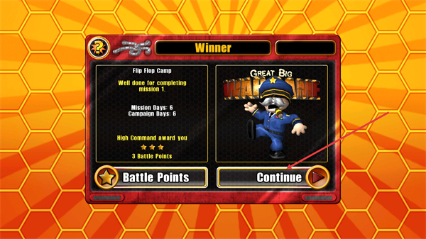 4、关卡胜利后,在结算界面获得评分,点击【Continue】按钮,进入下一个战役关卡。