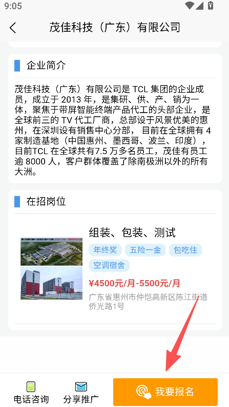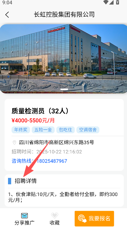 3、通过咨询热线了解信息,点击我要报名按钮,完成岗位投递操作。