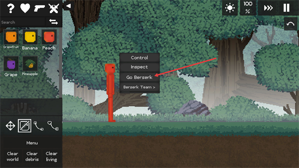 3、选中场景中的角色,点击弹出的【Go-Berserk】选项,触发角色的狂暴互动行为。