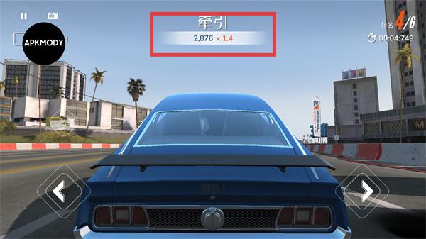 4、关注界面【牵引-2.876×1.4】的增益效果,借助该效果提升赛车速度,推进竞赛进程。