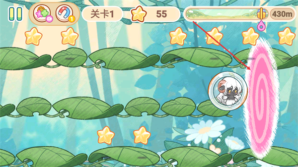 3、继续收集场景中的【星星】类道具提升分数,推进游戏进度。